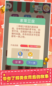 2、用赚取的资金升级厨房设备,解锁新菜品与烹饪技能,同时为角色换装提升顾客好感度。