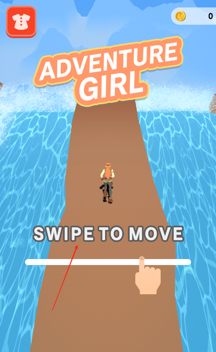 1、进入游戏后操控小女孩在瀑布岩壁起点准备,向上滑动屏幕完成跳跃,跨过第一道水流间隙,同时点击屏幕收集左侧的金币。