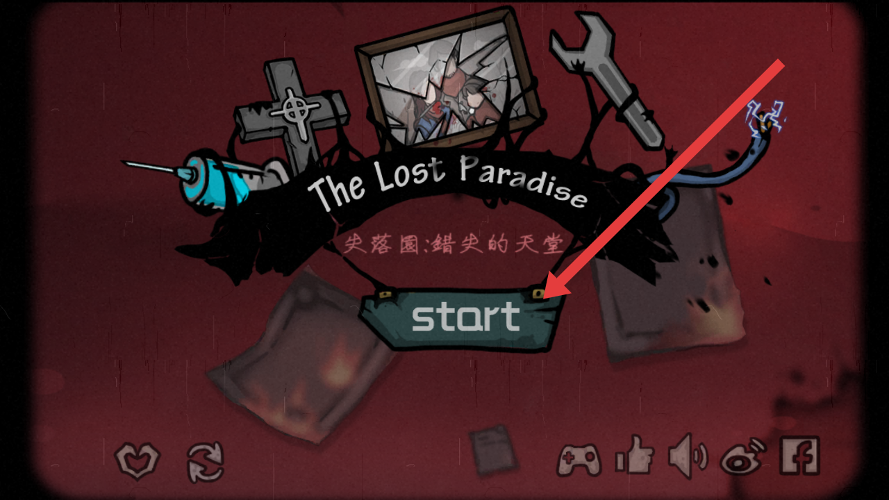 1、点击进入失落园的游戏主界面,点击中央悬挂的【start】木牌,开启你的解谜冒险。