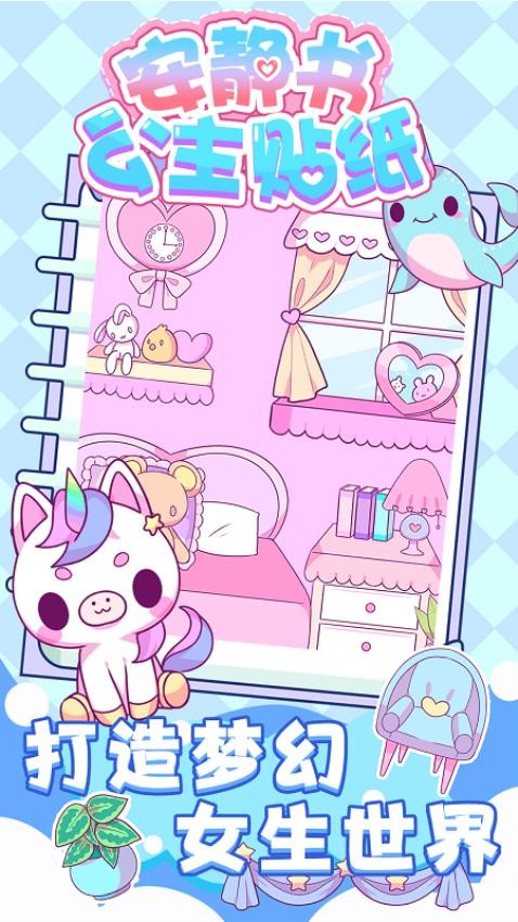 安静书公主贴纸最新版带你走进一个粉色的童话世界,体验梦幻般的装饰乐趣,大量精致贴纸和多样家具,只需发挥创意就能打造专属的公主小屋,无论是布置温馨卧室还是设计浪漫客厅,每件物品都能自由搭配,随着主题房间的解锁,还能发现更多隐藏装饰元素。