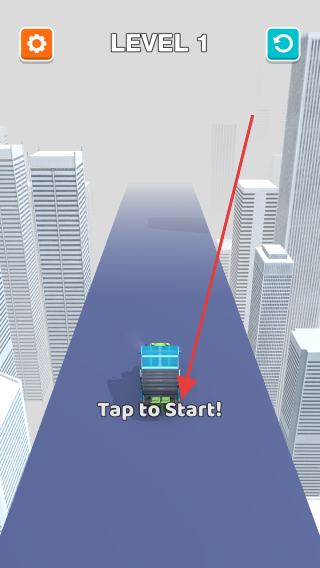 1、驾驶蓝色小卡车完成首次漂移过弯,顺利撞击路边木箱收集运输货物,开启货运挑战之旅。