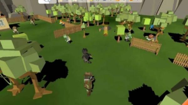 3、呈现出一个开放的户外场景,有树木、栅栏、建筑,还有多个角色,是生存、冒险类,抵御敌人或探索等玩法。