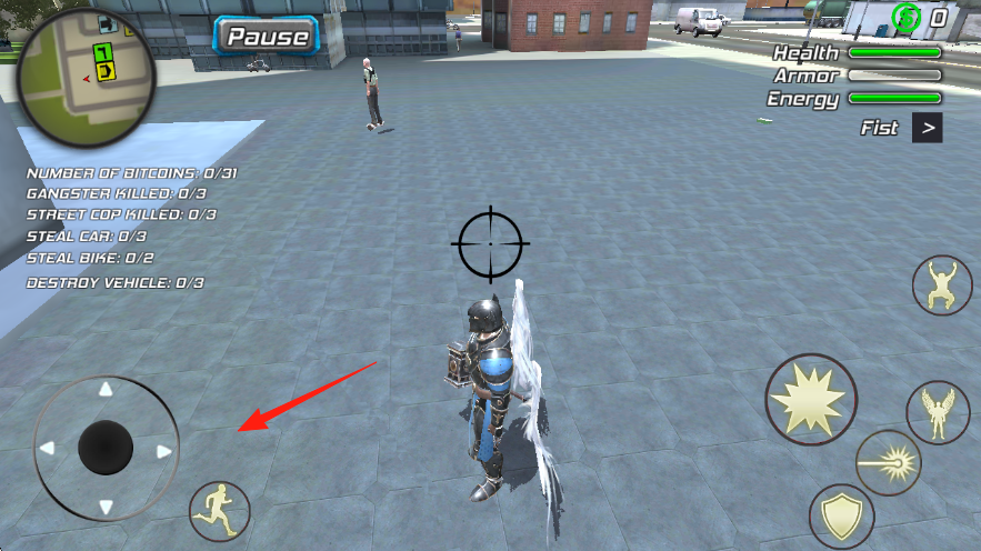 3、任务推进根据左侧任务列表(收集比特币、击杀目标等),用左侧摇杆移动角色,完成对应任务,推进游戏进程。