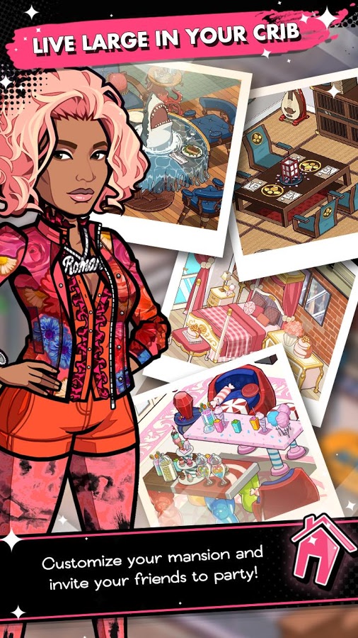妮琪米娜帝国是一款以嘻哈文化为核心的音乐节奏类手机游戏,玩家将追随饶舌皇后妮琪米娜的脚步,开启从音乐新人到嘻哈传奇的冒险之旅,不仅能收听独家单曲,还能通过创作歌词、定制造型、举办派对等多元玩法,沉浸式体验嘻哈明星的职业生涯,感受时尚与音乐交织的独特魅力。