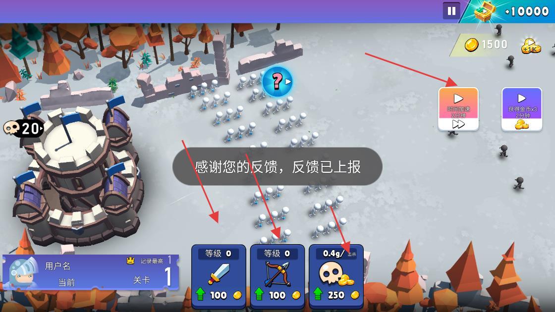 3、点击“开始战斗”,指挥军团沿路径推进,使用加速/金币翻倍道具,赢取关卡,解锁新内容。