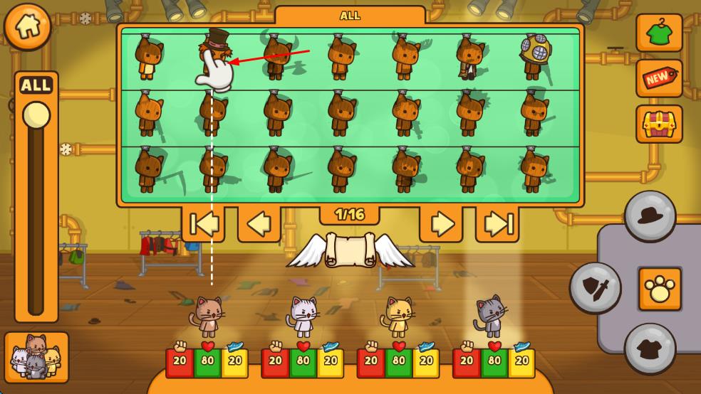 1、进入游戏后选择初始猫咪战士,如擅长近战的布偶猫或远程攻击的暹罗猫,在新手关卡学习点击释放技能、滑动躲避陷阱的基础操作。