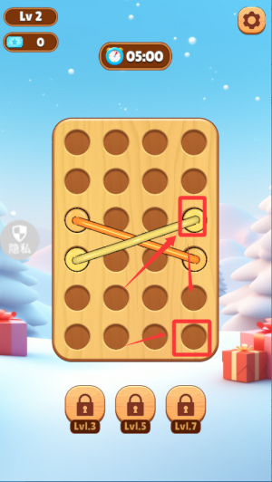 2、注意分辨不同颜色绳索的缠绕规律,避免随意点击造成混乱,按顺序一步步分离交错点,提高解谜效率和成功率。