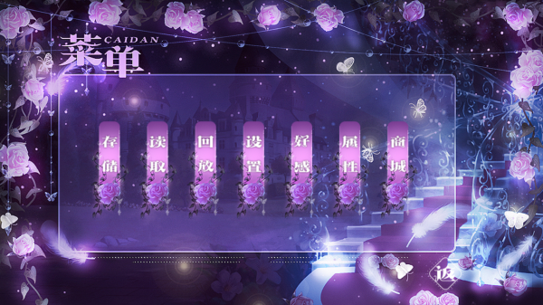 3、菜单页可【存储】【读取】管理进度,【回放】剧情,调【设置】,查【好感】【属性】,逛【商城】推进游戏进程。