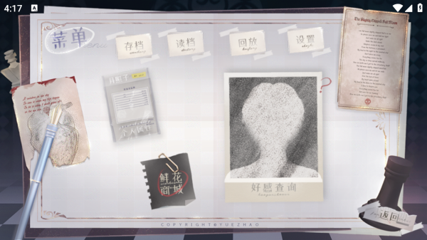 3、菜单页可【存档】【读档】【回放】【设置】,查【好感查询】,逛【鲜花商城】,借助功能管理剧情进度 。