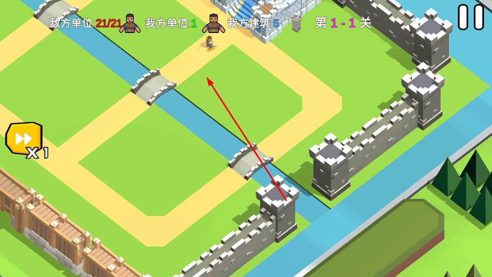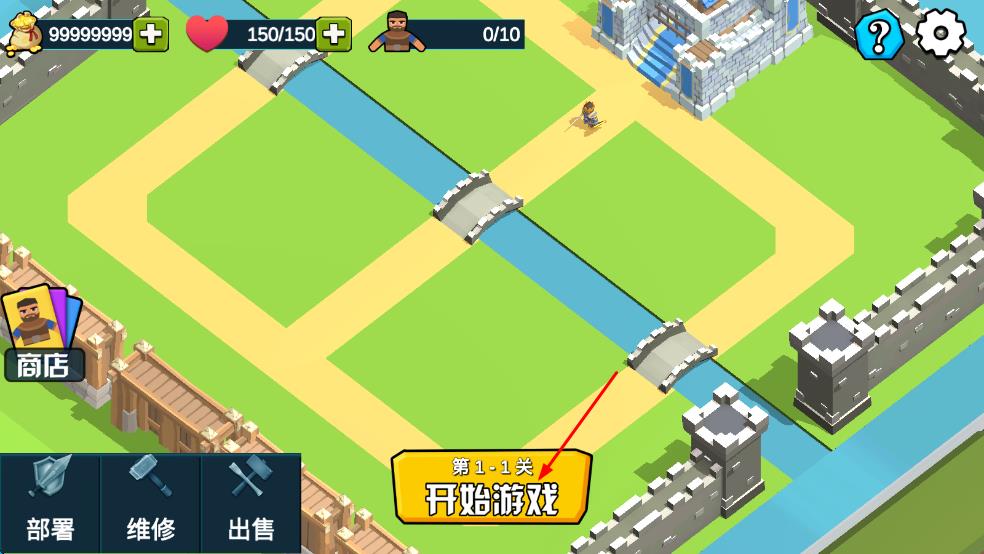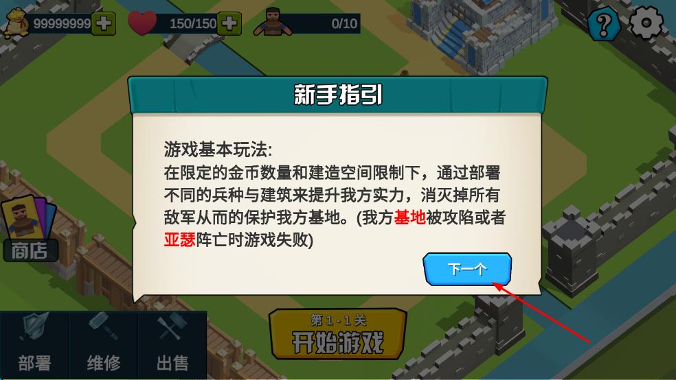 1、进入游戏后先查看关卡地形,在怪物行进路线旁的空地放置基础箭塔,点击箭塔可使用金币进行初级升级提升攻击速度。