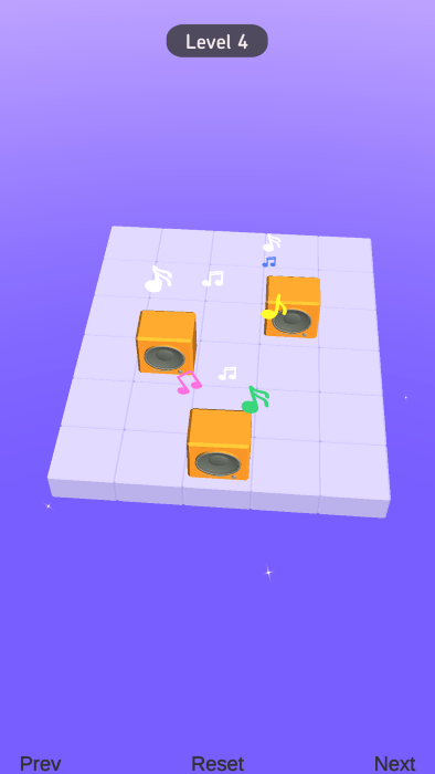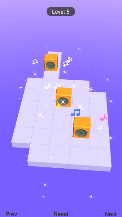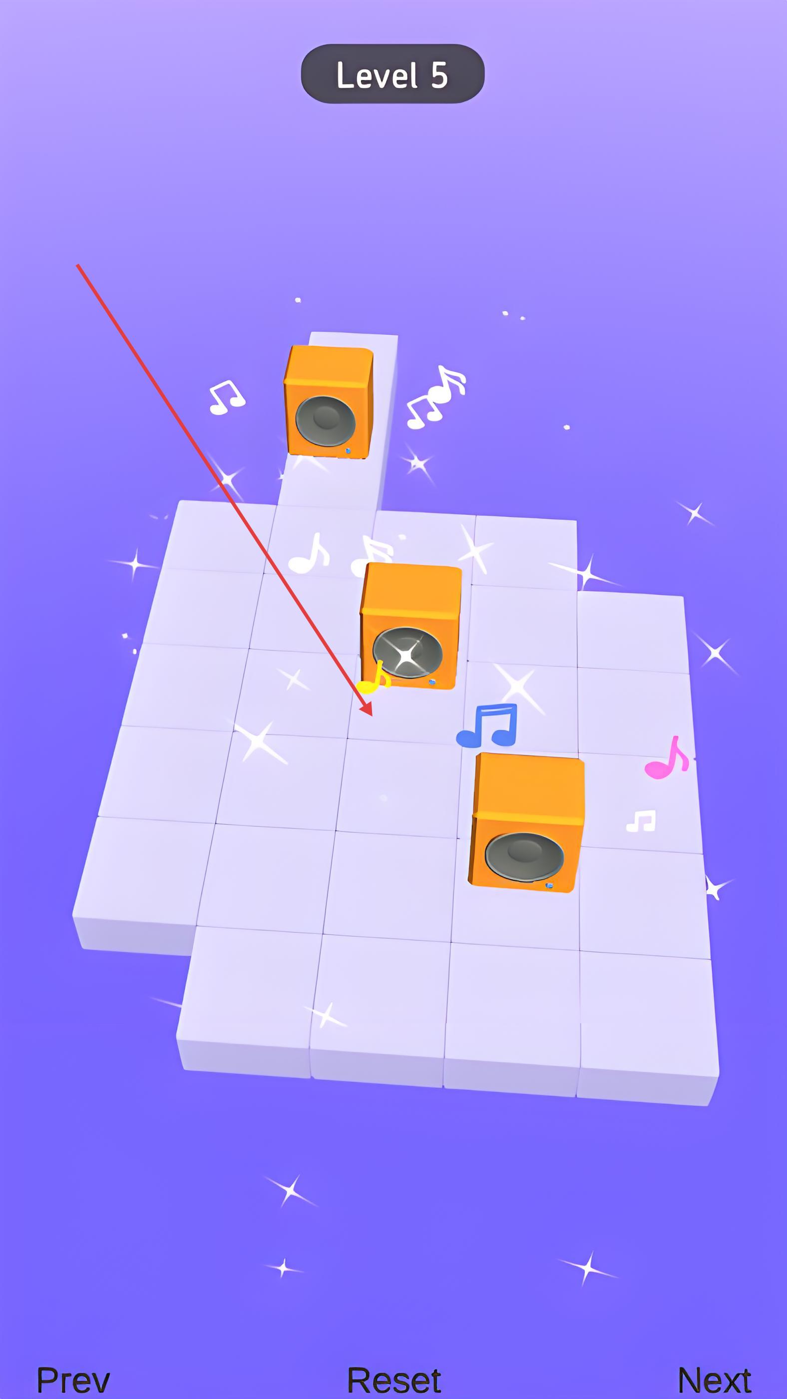 2、在闯关过程中观察关卡布局,利用推箱子的规则避开障碍,推动立方体为音响开辟道路,逐步收集更多音符。