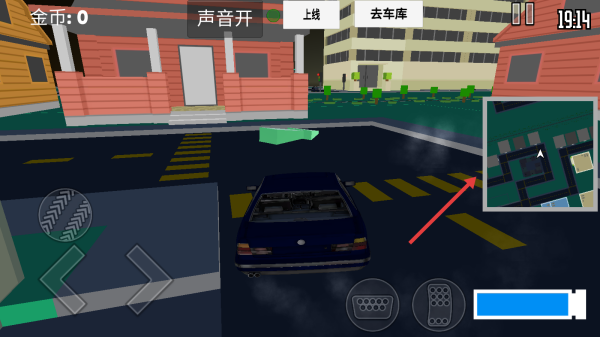 2、通过右上角小地图,查看乘客所在位置标记,驾驶出租车沿道路前行,注意控制车速,避免与其他车辆碰撞。