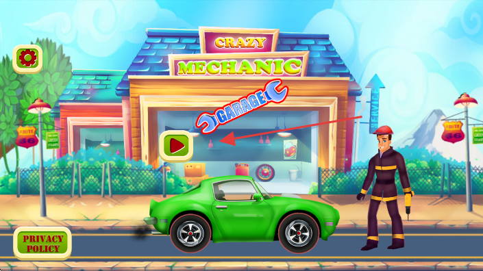 1、点击【Crazy Mechanic】车库前的绿色三角按钮,开启车辆维修流程。