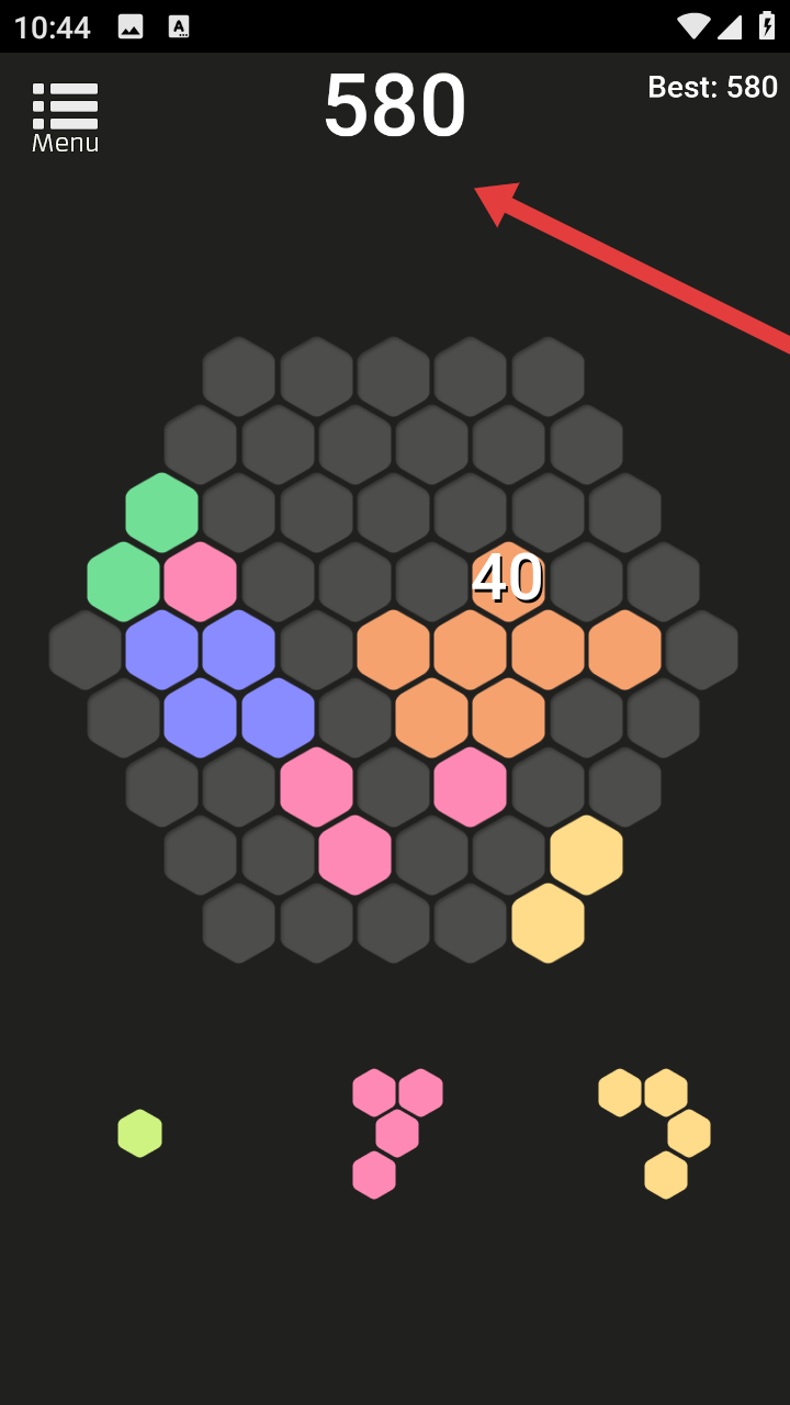 2、游戏中优先消除带数字“40”的色块,同色相连触发消除,积累分数,注意色块形状适配网格空位。