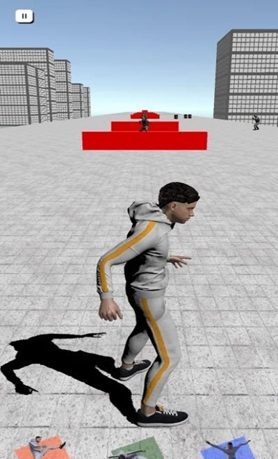 1、跑酷动作衔接:在奔跑中连续点击跳跃键可完成二段跳,落地前滑动屏幕调整方向实现空中转向,通过“跳跃-蹬墙-飞跃”的动作组合跨越长距离障碍。