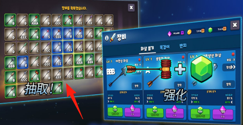 2、打开装备栏,选择抽取装备,获得后用材料【强化武器】,提升战斗属性。