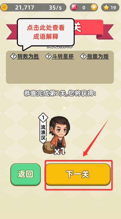 1、游戏初始阶段,通过点击按钮购买新角色,丰富你的成语挑战阵容。