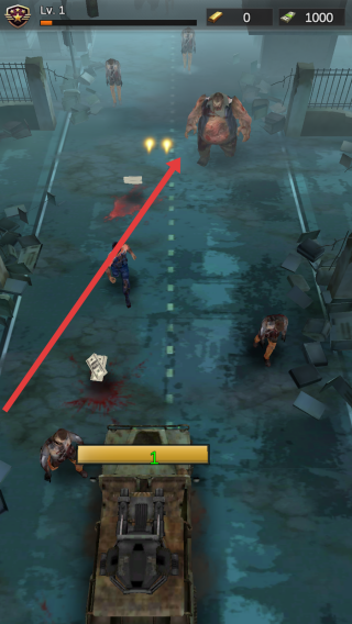 1、战斗时,操控角色射击箭头指向的大型僵尸,优先集火高威胁目标,清理道路上的普通僵尸。