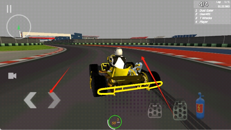 1、基础操作技巧:通过虚拟摇杆控制转向,配合屏幕按钮实现加速、刹车与漂移操作,精准把握漂移时机可获得氮气加成,提升直线速度。