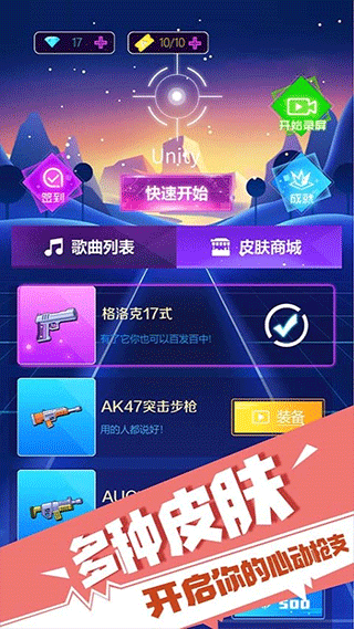 1、游戏以枪械射击为主题,将传统音游与射击动作巧妙融合,让玩家在击发乐符的同时仿佛置身于激烈枪战现场。