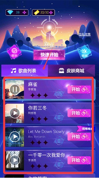 1、进入游戏后选择自己喜欢的音乐就可以开启音乐之旅了。
