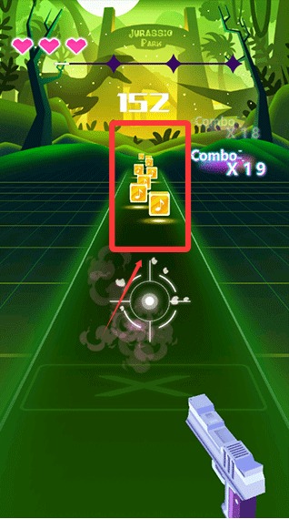 1、进入关卡后,节拍线上将出现弹幕环环相扣,需在音符到达中央区时左右滑动,触发精准射击以获取连击积分。