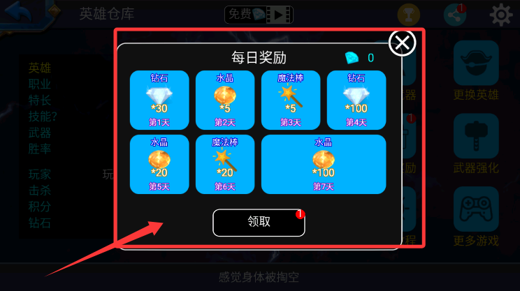 2、每日登录可以领取钻石等随机资源奖励,为战斗做好准备。