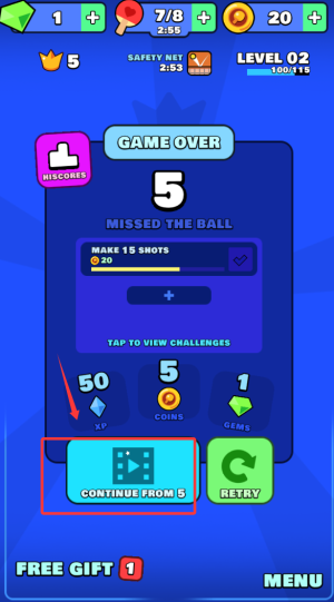 3、对局失败时可通过观看广告获得继续机会,延长游戏体验时间。