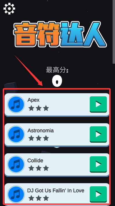 1、进入游戏后,在曲库界面挑选喜欢的音乐曲目开始节奏挑战。
