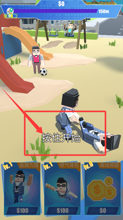1、长按屏幕启动游戏,准备开启欢乐的投掷冒险之旅。