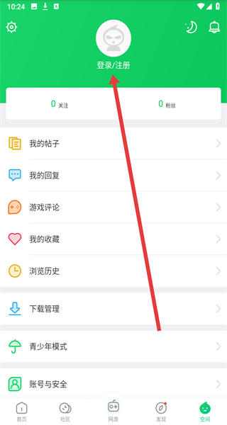 1、在进入到我的主页中,可以点击上方头像区域,准备开始进行登录。