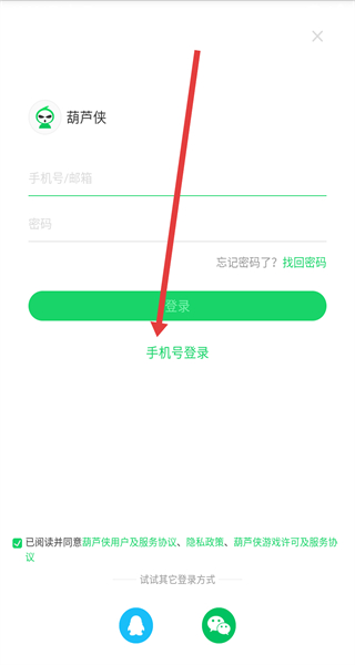 2、在跳转到登录页面中,可以点击下方手机号登录按钮,切换登录方式。