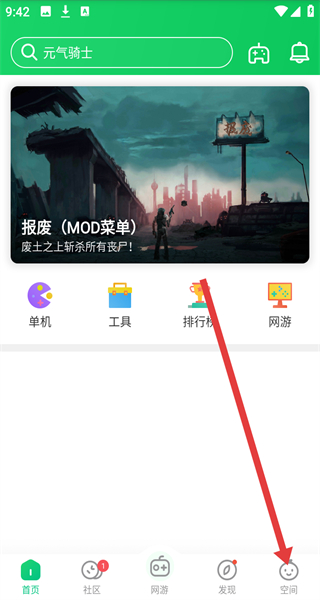 1、点击葫芦侠首页下的空间按钮,即可进入到我的主页中。