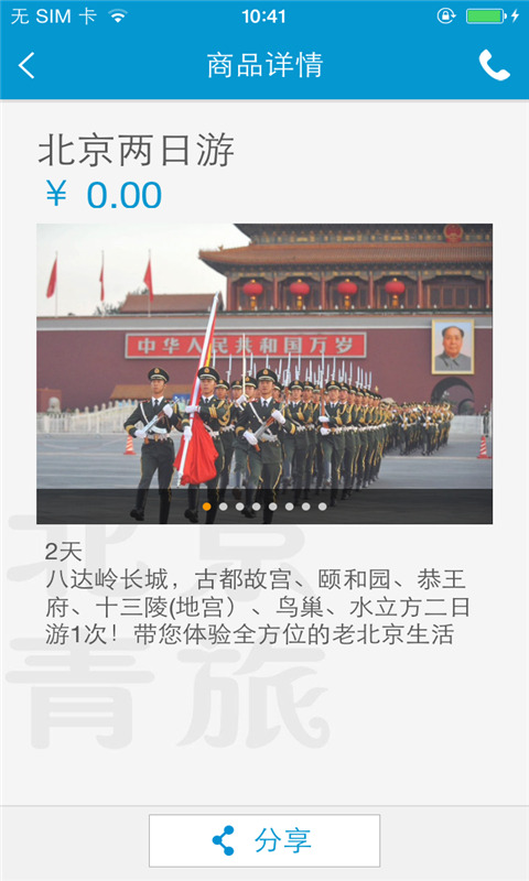 北京青旅app是北京青年旅行社推出的手机软件,是一款客户服务软件,用户通过手机可以在线预约旅行服务,还能随时随地的了解产品,了解商家,需要的朋友赶快来下载体验吧!