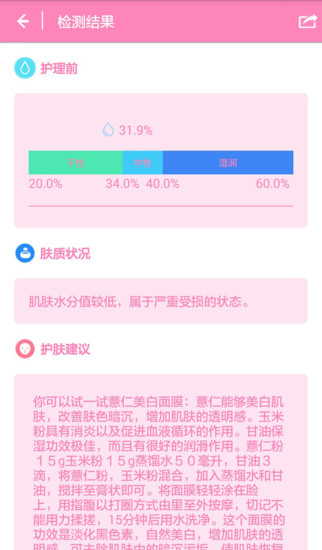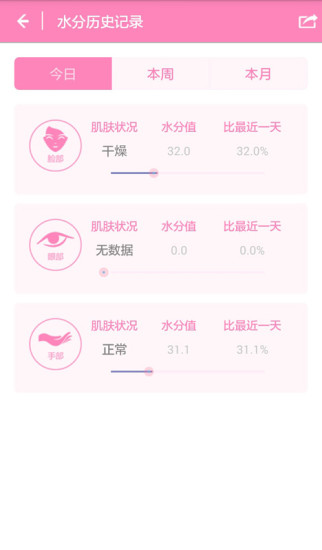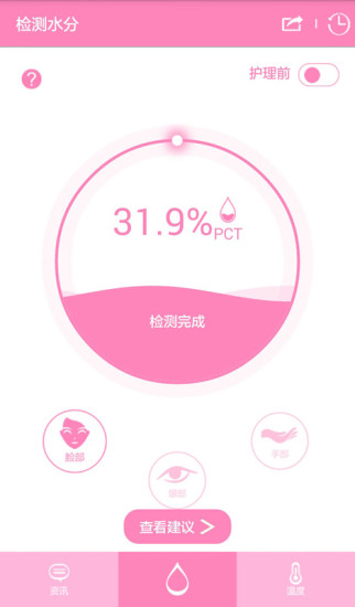 随时美app是一款专门为女性和儿童打造的水分温度测试软件,测试完成后,会显示你的数据,并且给你提供护理建议和意见,软件还能记录你每天的检测结果,进行分析比较,让你一直美下去,需要的朋友赶快来下载体验吧!