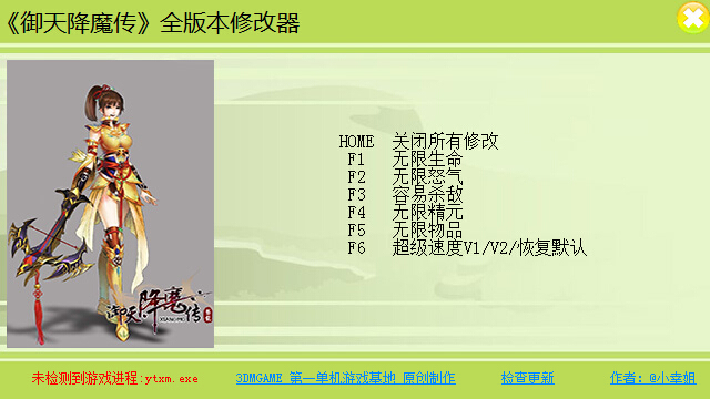 御天降魔传全版本修改器是游戏《御天降魔传》一款非常实用的修改工具。相比其他的修改器,该修改器支持所有游戏版本的使用,在功能方面也很丰富,提供无限生命、无限物品、容易杀敌等功能,可以帮助玩家更好的进行游戏。赶快下载体验吧!