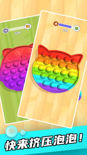 3、游戏内置物理反馈系统,玩家挤压泡泡时会获得真实的触感反馈和悦耳的音效,增强解压效果和游戏沉浸感。