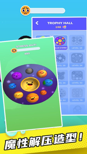 4、游戏采用积分和星级评价系统,玩家可以通过高效解压和完美表现获得更高分数和评价等级,解锁更多解压道具。
