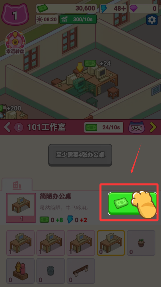 4、个性化装修系统自由度极高,从办公桌椅到墙面装饰均可自定义,不同风格的装修能触发特殊效果。