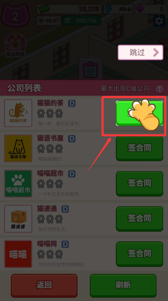 3、社交系统设计巧妙,玩家可拜访好友公司获取灵感,或通过商会联盟参与跨服贸易战,每周举办的喵界商业峰会。