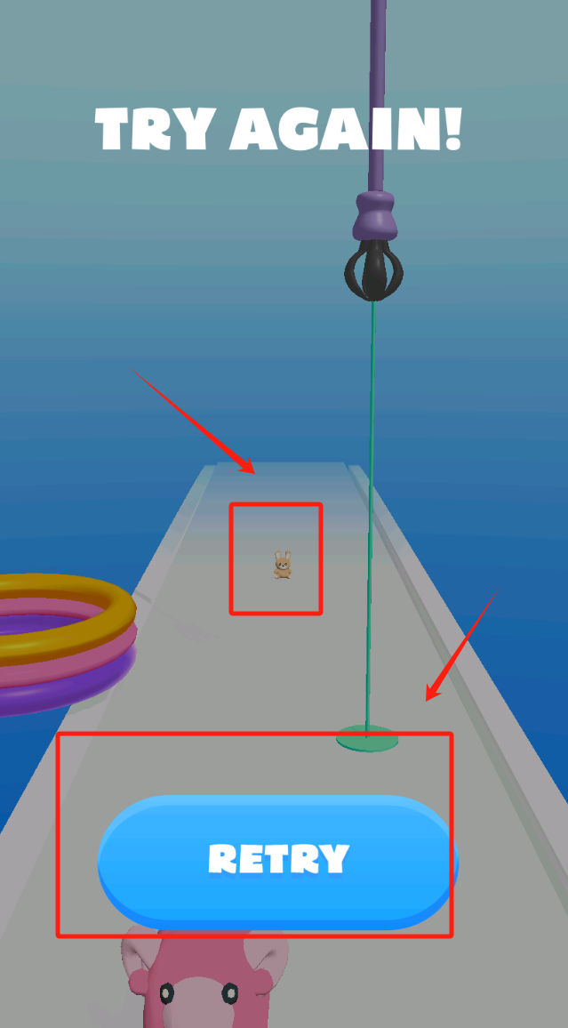 3、如果抓错了东西,游戏就会结束,屏幕上会跳出“TRY AGAIN”提示,点击那个蓝色的“RETRY”按钮就能重新开始这一关。