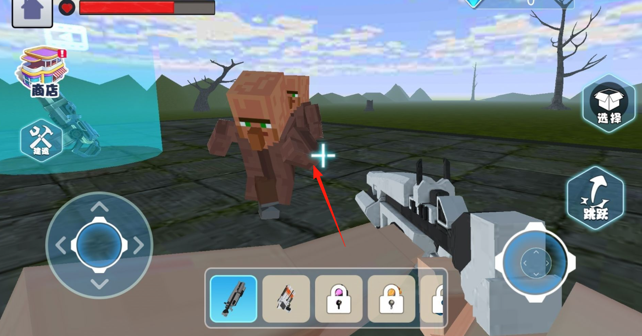 1、遇到敌人时,瞄准箭头指向的怪物,点击射击键,利用当前武器攻击,注意把控射击节奏,消耗敌人血量。