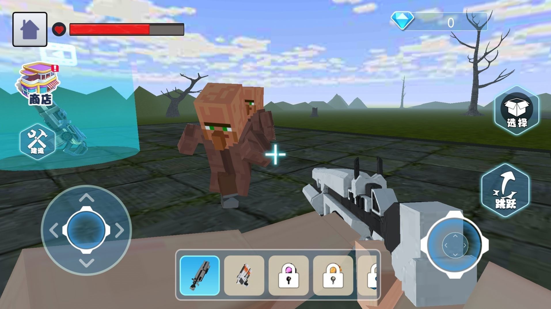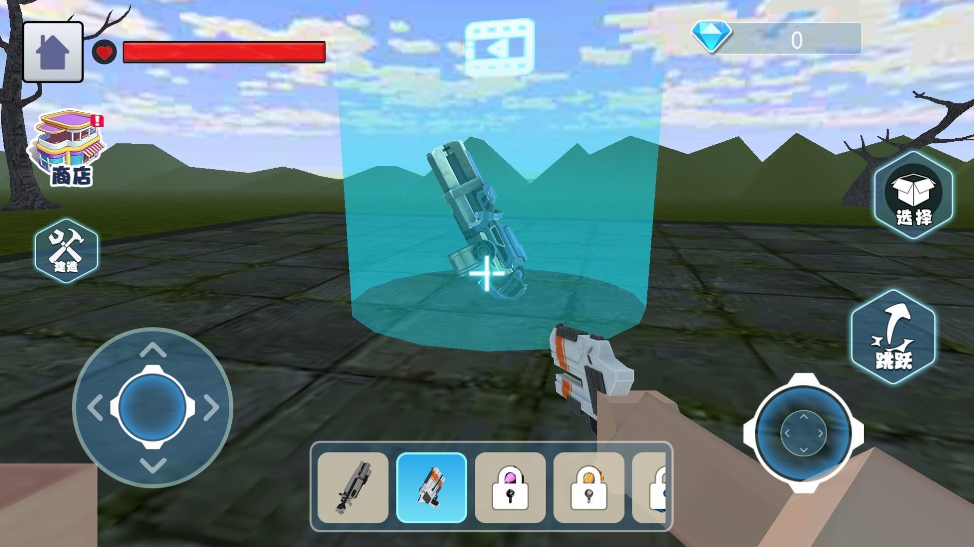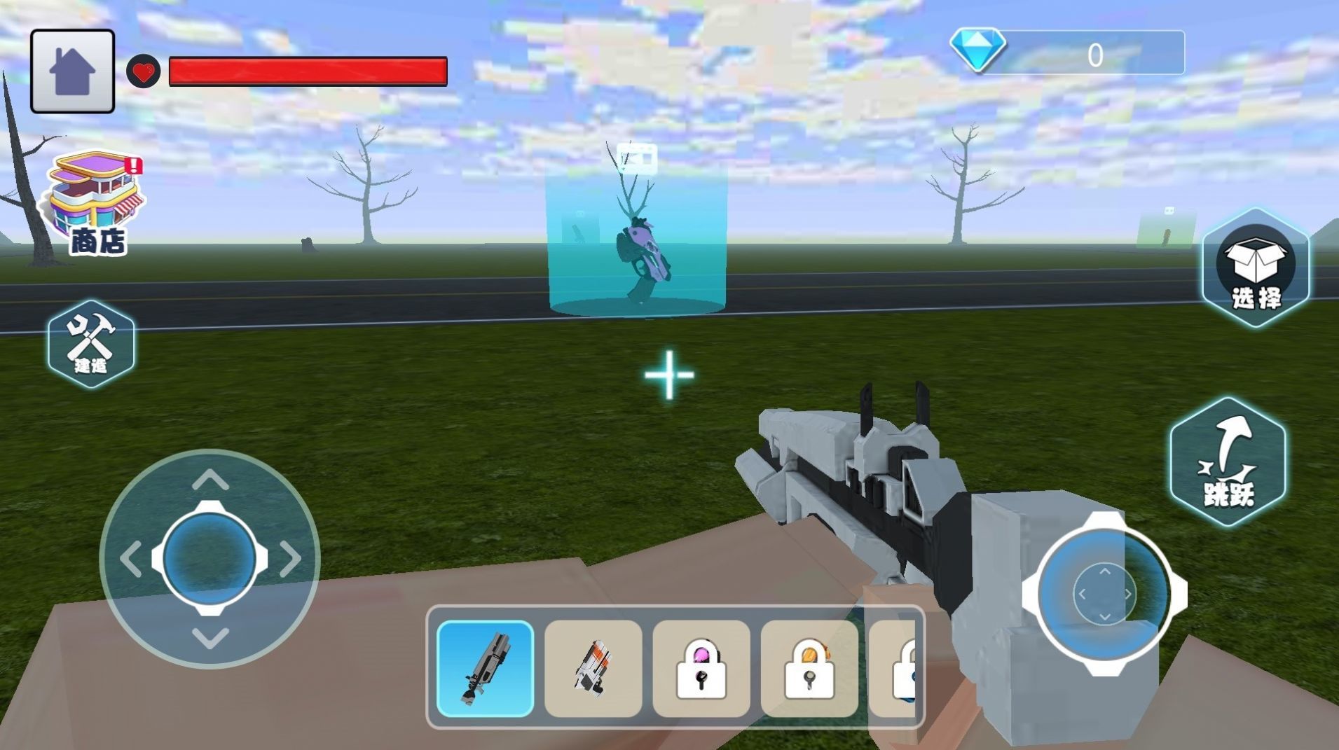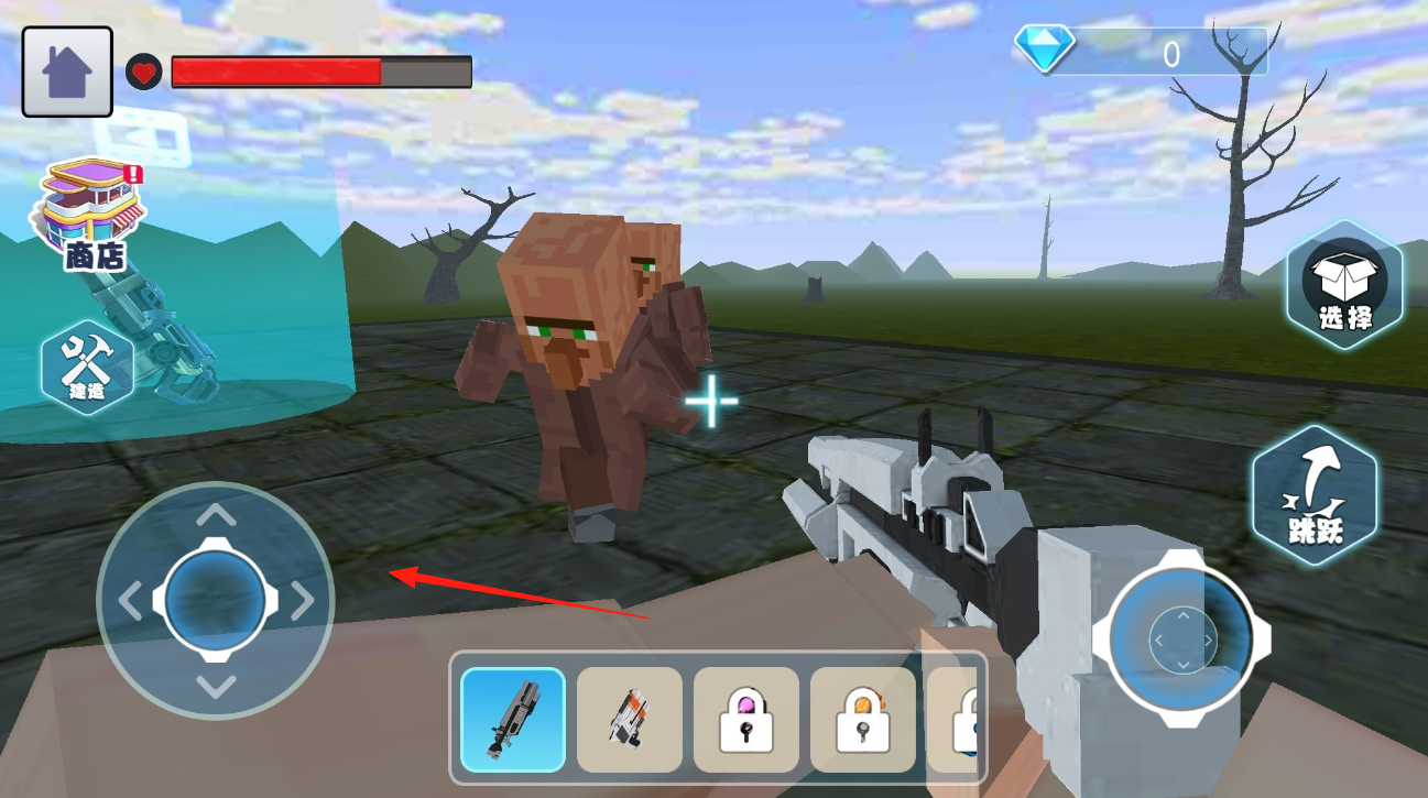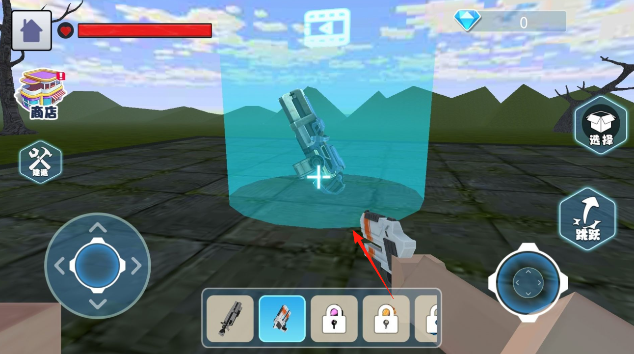 2、看到箭头指向的道具(武器箱),移动角色靠近,自动拾取新武器,切换使用,提升战斗能力。