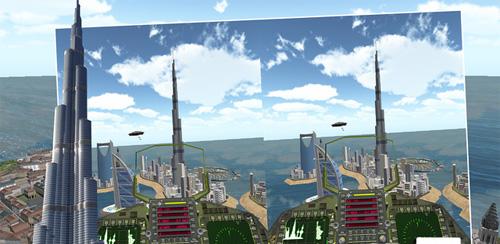 2、地标探索:锁定迪拜哈利法塔、棕榈岛(图2/3),规划航线低空穿越,触发地标互动(穿楼、绕塔)。