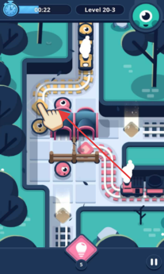 3、在关卡20-3中,利用剩余时间(00:22),快速点击箭头指向的轨道,合理规划火车路线,确保火车顺利通行,完成关卡挑战。。