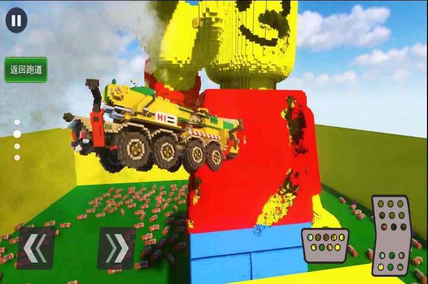 3、像素美学独特:乐高式像素风格赋予车辆和场景复古童趣感,方块组成的世界既简洁又充满细节,撞击时的色彩飞溅与光影特效,让破坏画面兼具暴力美学与卡通萌感。
