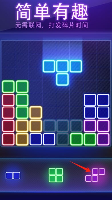 荧光拼图消消乐是一款融合经典消除与创新玩法的休闲手游,玩家将通过旋转、拼接与消除荧光方块,体验从新手玩家到消除大师的成长历程游戏采用深度策略系统与渐进式难度设计,结合丰富的关卡模式与成就解锁,高度还原消除游戏的紧张与成就感,通过解锁新道具、升级技能与挑战高分。