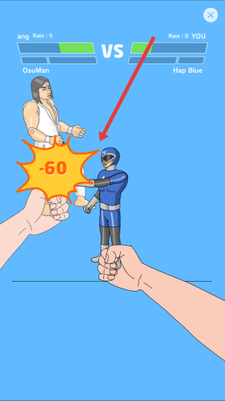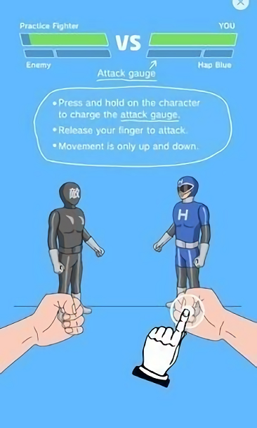3、战斗时,操控角色(Hap-Blue),按箭头指引,攻击对手(OzuMan),累积伤害,争取胜利。