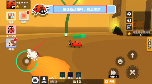 3、拖动摇杆控制,让瓢虫靠近目标木牌。