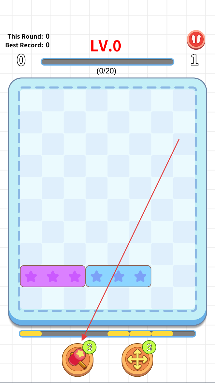 3、下方有道具(如锤子),点击使用可清除阻碍方块,合理利用道具,突破关卡获取高分。